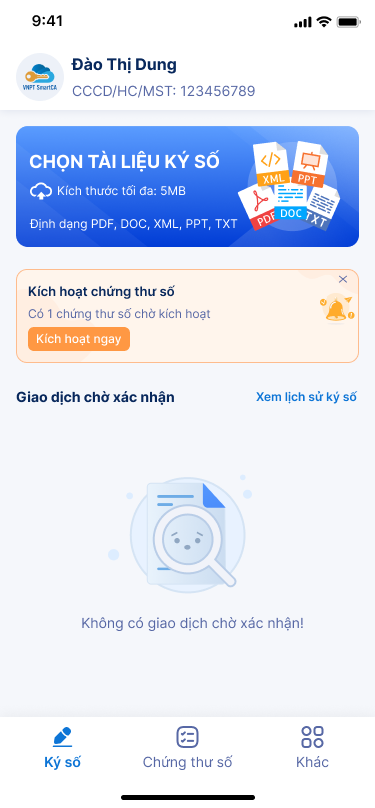 Sau khi hồ sơ được phê duyệt, Quý khách vui lòng thực hiện kích hoạt chứng thư số.