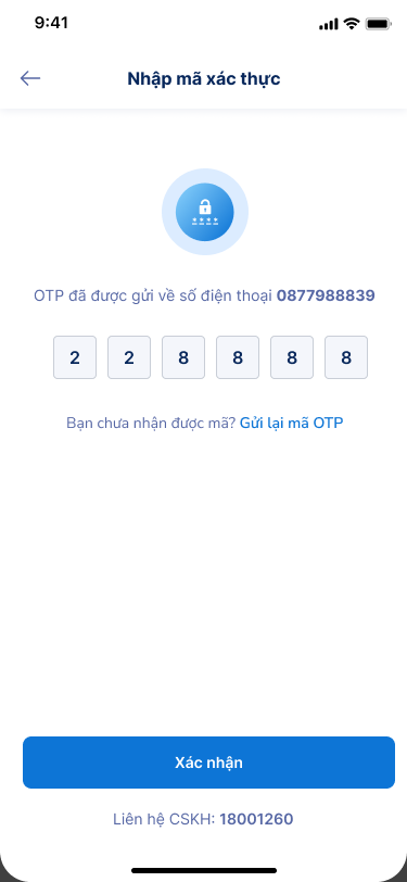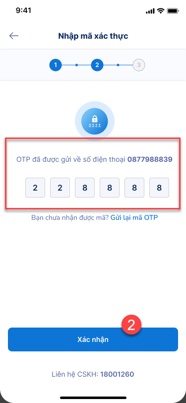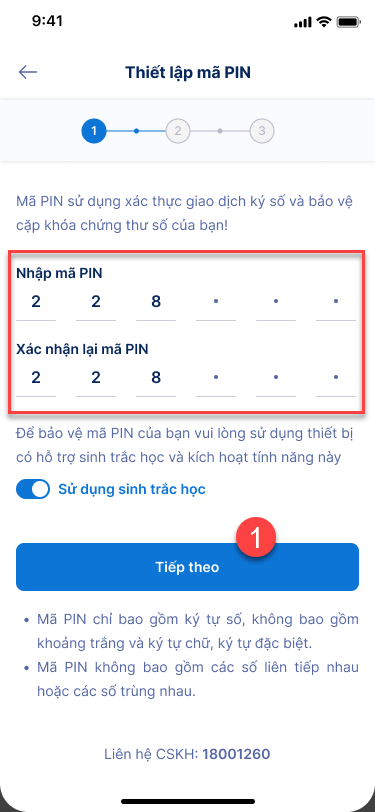 - Quý khách tự thiết lập mã PIN và ấn Tiếp theo.
