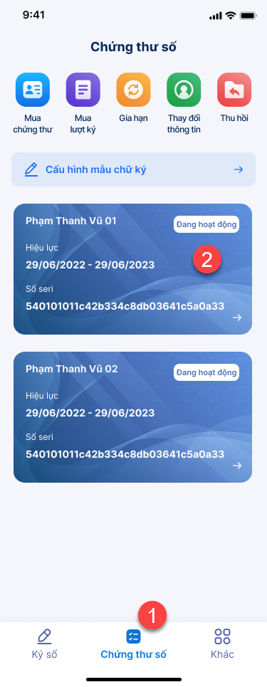 Sau khi gửi yêu cầu đổi thành công, Quý khách cần kích hoạt chứng thư số trước khi sử dụng chứng thư số trên thiết bị mới.