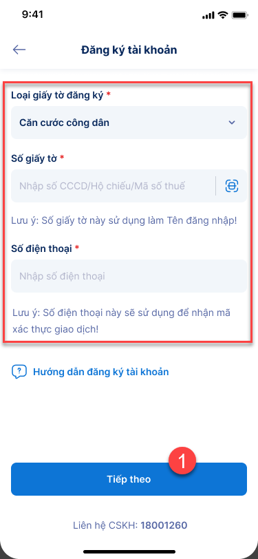 Bước 2: Nhập thông tin đăng ký tài khoản