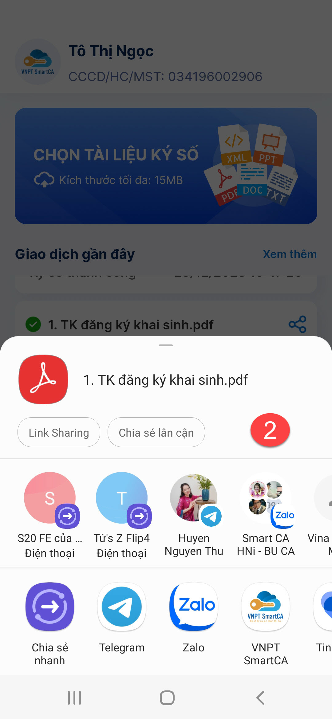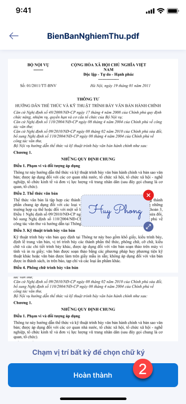 Bước 1: Chọn chức năng ký số và tài liệu ký
