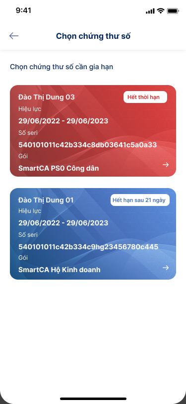 Đối với chứng thư số thuộc Khách hàng tổ chức, doanh nghiệp hoặc Cá nhân trong TC-DN, vui lòng liên hệ trực tiếp với Nhân viên kinh doanh VNPT để thực hiện thủ tục gia hạn.