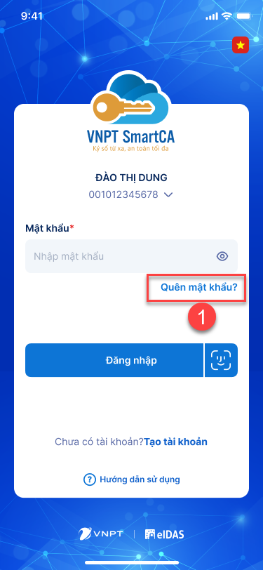 - Nhập số định danh (số định danh đã sử dụng đăng ký tài khoản).