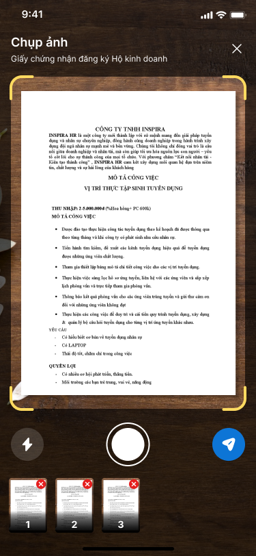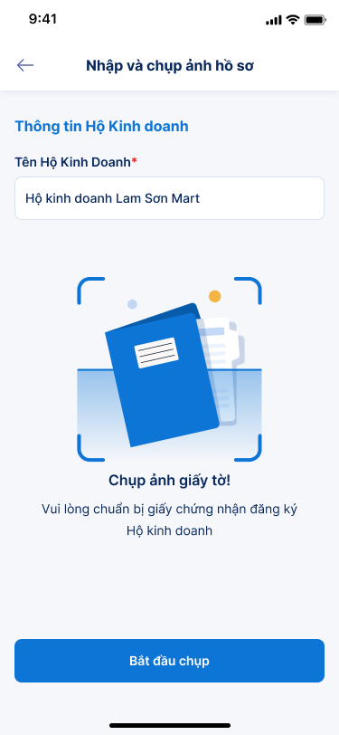 - Thực hiện Chụp ảnh Giấy chứng nhận đăng ký hộ kinh doanh theo hướng dẫn.