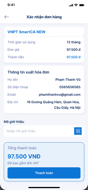 Sau khi đăng ký tài khoản thành công, để thực hiện ký số Quý khách thực hiện mua chứng thư số.